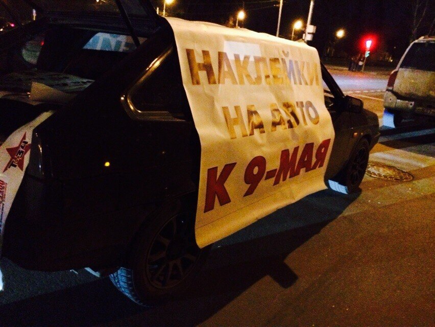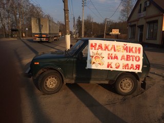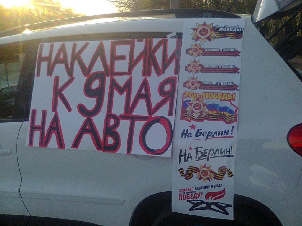 ЗАДАЧА: продажа наклеек на машины к Дню Победы 9 мая, на одном месте - без доставки.