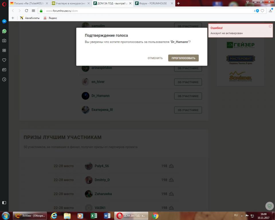Прошел по ссылке, которую ты дал, нашел твой профиль, жмякнул "Об участнике", потом жмякнул "Голосовать", потом "Проголосовать" и выдает ошибку