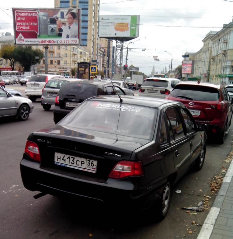 Нексия в старом кузове светло-коричневая с большой клубной наклейкой, сворачивал вглубь берёзовой рощи.