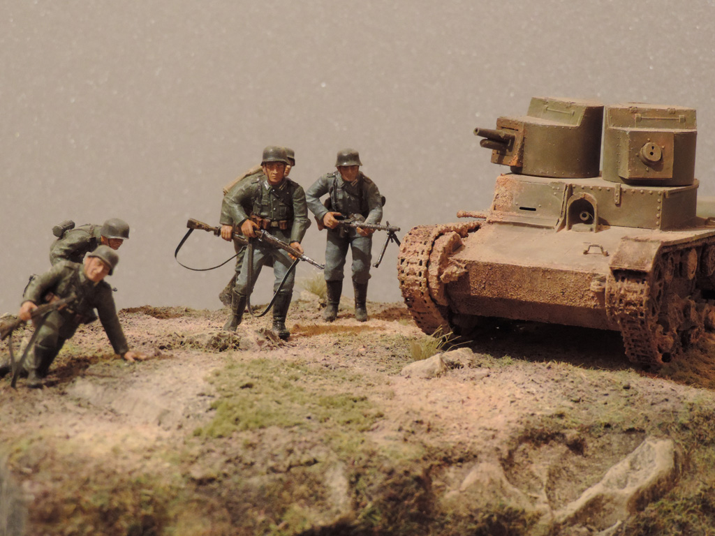 Вложение 36655Вложение 36656Вложение 36657Вложение 36658Вложение 36659Вложение 36660Привет, братья по разуму. Долго отсутствовал, за это время начал новую диораму. Сейчас почти готово основание, уже начал запиливать и закрашивать фигурки. Диорама посвящена нашим боевым соединениям, оставшимся в Аджимушкайских каменоломнях летом 1942 года. Сюжет навеян старым советским фильмом "Сошедшие с небес". Красноармейцы выбираются за водой к колодцу, который простреливается немцами. В-общем, пока размещаю несколько фотографий основания. Очень надеюсь скоро всё закончить и разместить готовую работу.