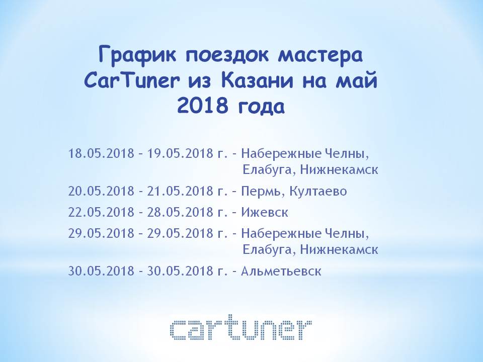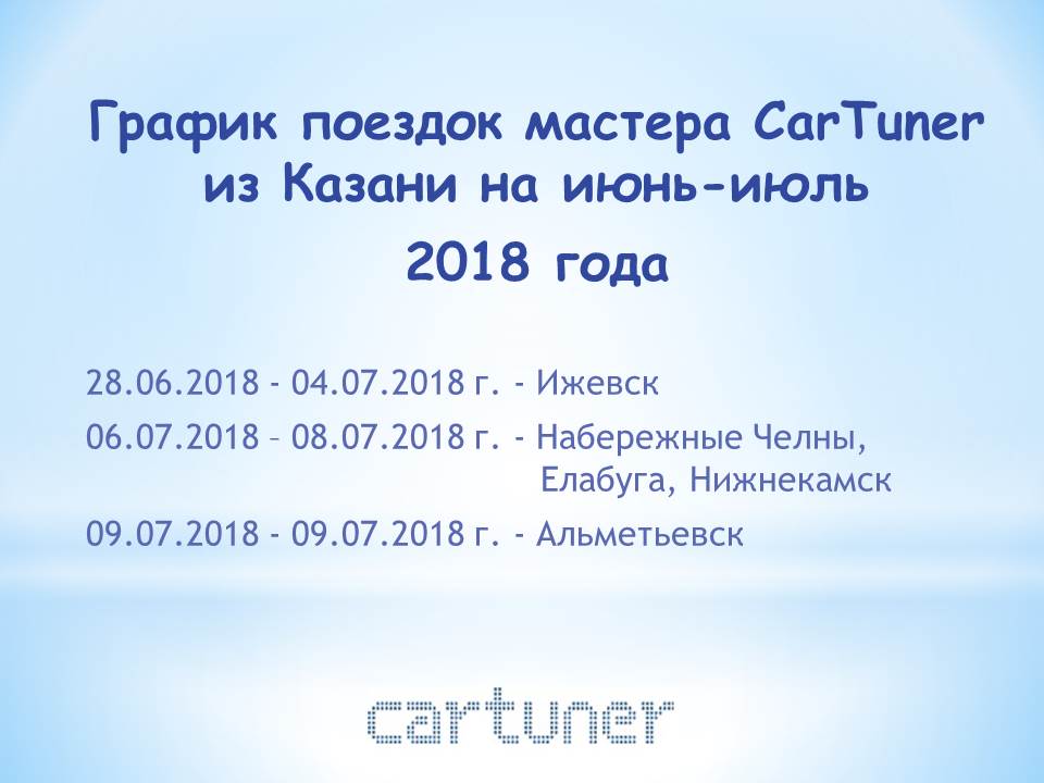 График поездок мастера CarTuner из Казани на июнь-июль 2018 года