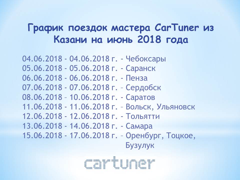 График поездок мастера CarTuner из Казани на июнь 2018 года