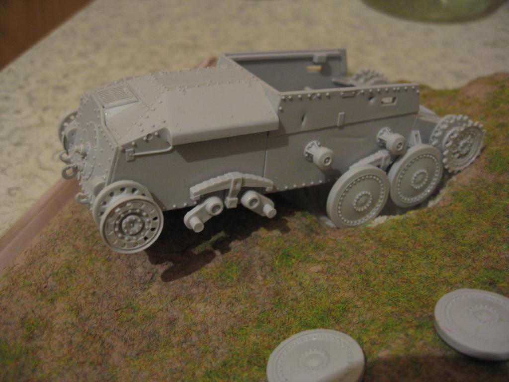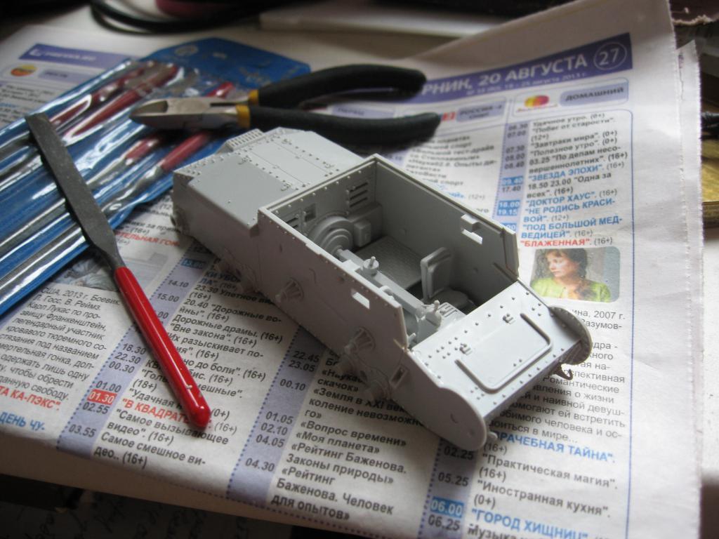 Вложение 18869Вложение 18870Вложение 18871Ну, что, определился в магазине, пощупал пластмассу - в итоге приобрёл 38-й. Всё удовольствие - 300 рублей. Будет, конечно, пляска с гусеницами, но а кому легко. Инструкция вроде бы, достаточно понятная. Я, правда, уже сталкивался с этой фирмочкой - встречаются несоответствия деталей и инструкции. Надеюсь, что здесь будет таких косяков по минимуму. С другой стороны посмотреть - всё равно ломать его так, как только наши снаряды с гранатами умеют. Меня сейчас держит только куча срочной работы, которую нужно сдать. Иначе бы начал монтаж танка прямо сейчас. Потерпите, други, самому невтерпёж. Смотрю косым взглядом на диораму, и сердце кровью обливается - руки чешутся разобраться быстрее с танком и начать превращать чистенькое поле в поле битвы с полуразрушенными и осыпавшимися окопами, воронками и прочими атрибутами кровавого боя. Парни, я пока только не представляю, какого примерно диаметра и глубины должны быть воронки от мин и снарядов. Если кто сможет прикинуть в масштабе, подскажите, пожалуйста. Да, Дима, я в магазине замучал продавцов, из каких красок можно собрать тот самый цвет танка, который ты прислал. Они, оказывается, о румынах вообще представления не имеют. С горем пополам нашли сочетание. Как начну красить, всё подробно опишу.