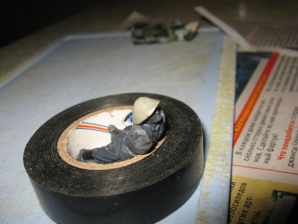 Вложение 19822Вложение 19823Вложение 19824Вложение 19825Вложение 19826Начал проводить пластическую хирургию первому немцу. Сточил сапоги потоньше и намотал обмотки. Обмотки сначала сделал из лейкопластыря, но мне показалось толстовато и тогда намотал полоску изоленты. После сапог поиздевался над каской. Сточил немецкую каску аж до башки и на неё наложил эпоксилиновый блин, придав ему форму румынского шлема. Буду ждать до завтра высыхания каски и тогда всё в покраску. Если первый немец-румын меня и вас устроит, начну остальных перетачивать потоком.